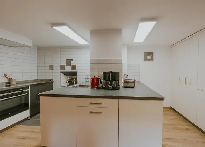 Die Zimmer stellen einen Balkon, eine Sitzecke und einen Flachbildfernseher mit Satellitenkanälen bereit und eine Küche umfasst eine Kaffee-/Teemaschine, einen Kühlschrank und einen Herd. Daunenkissen und Daunen-/Federkissen stehen in der Villa Chalet Altes Schulhaus zur Verfügung. Eine behindertengerechte Dusche, eine getrennte Toilette und eine Badewanne stehen in den Badezimmern bereit.